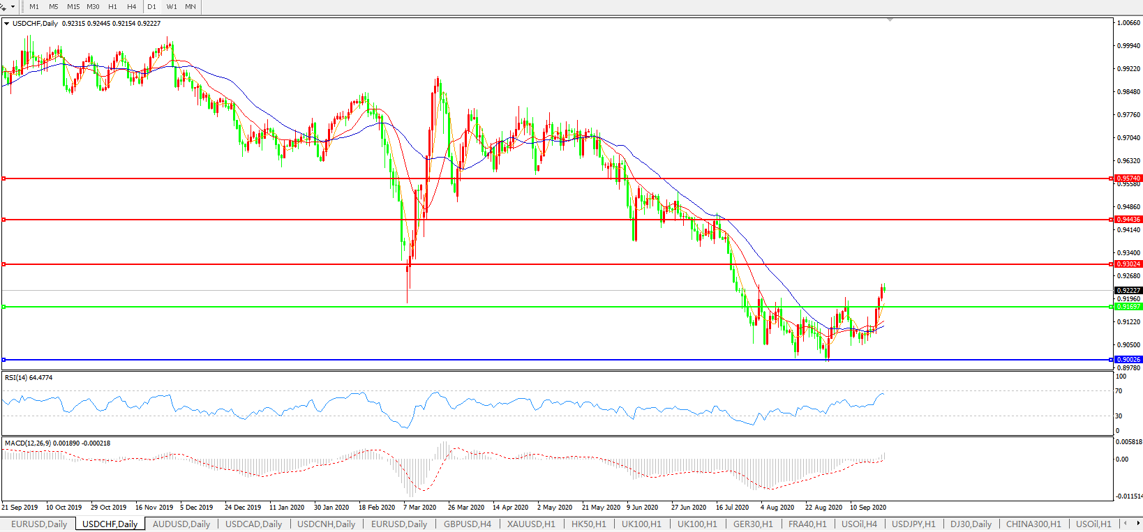 交易策略:0.9170上方看涨,目标0.9300、0.9440