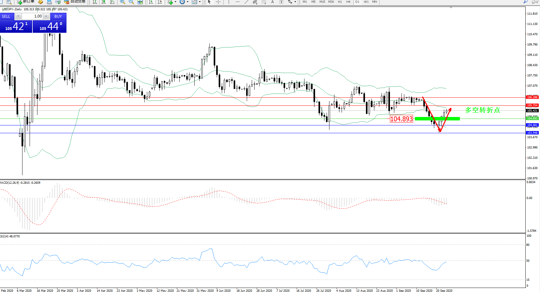 多空转折点:104.893