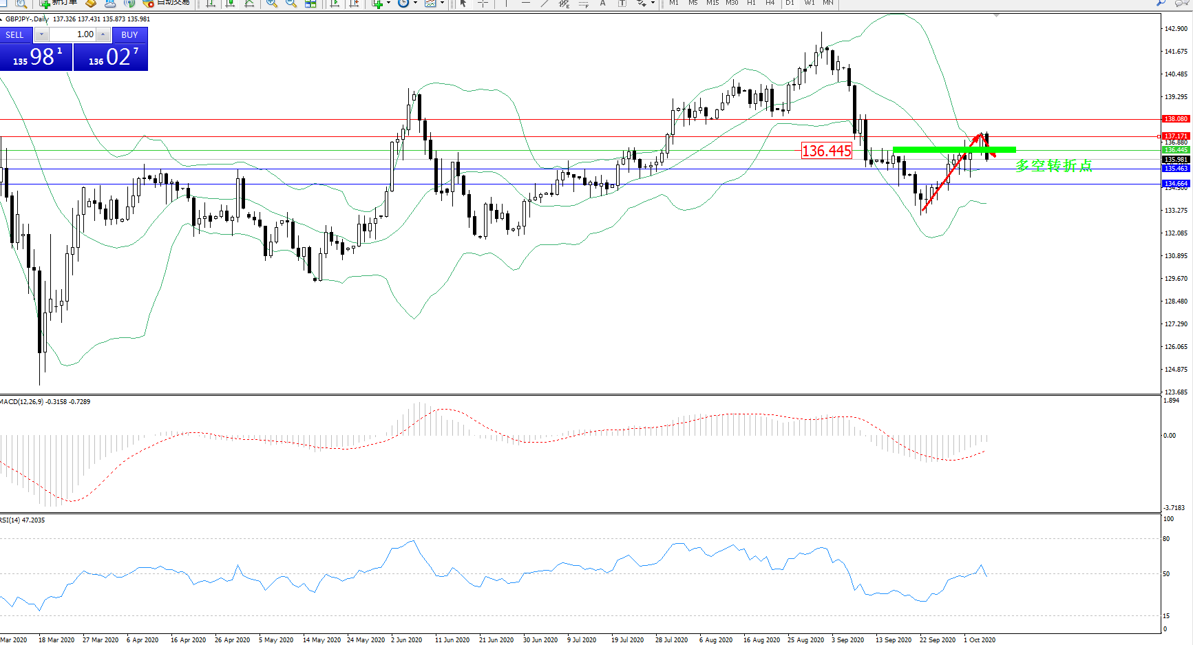 技术点评:空头动力延续布林带指标下轨弱势下探后,低位得到支撑开始反转上移,触及布林带指标上轨附近节点后急速回撤,布林带指标呈收口走势中,且低位有继续回升迹象,MACD指标处于空头区域低位弱势整理平移中,RSI指标处于空头区域低位持续宽幅震荡后开始缓慢回升至50均衡线附近徘徊;