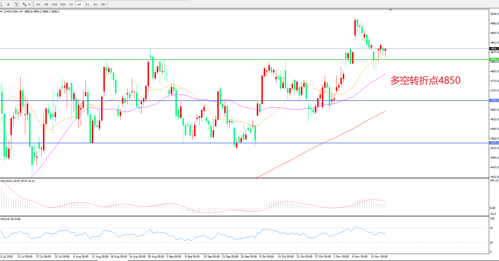 交易策略:在4850.00之上看涨,目标5000.00       5150.00