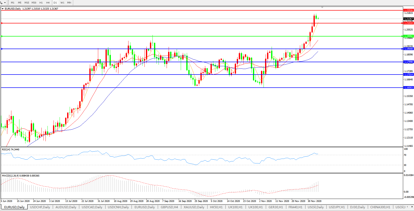 欧元兑美元EURUSD 日线图: