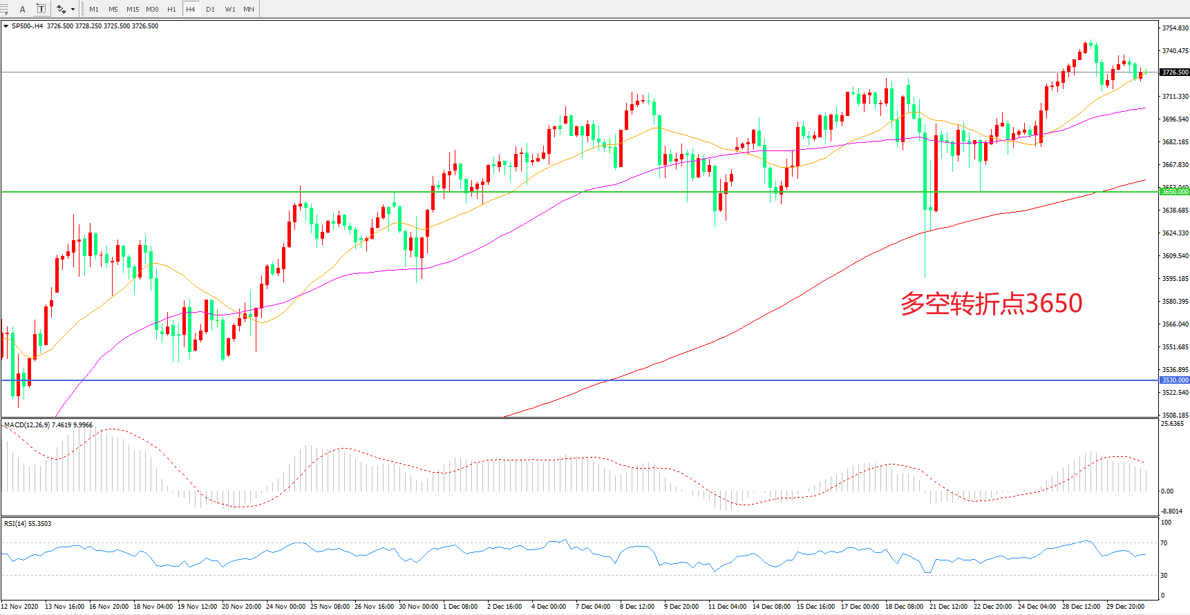 多空转折点:3650.00