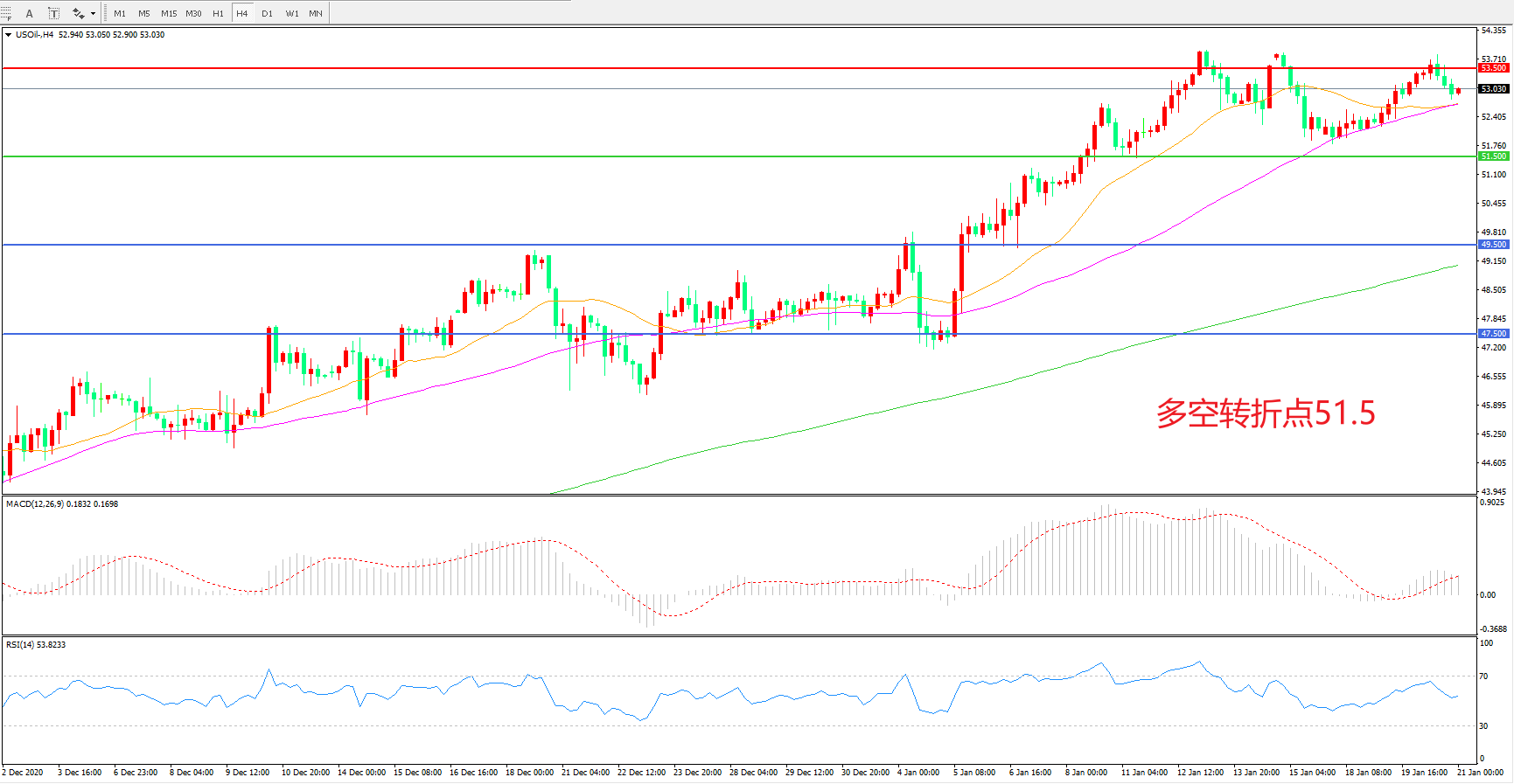 多空转折点:51.50
