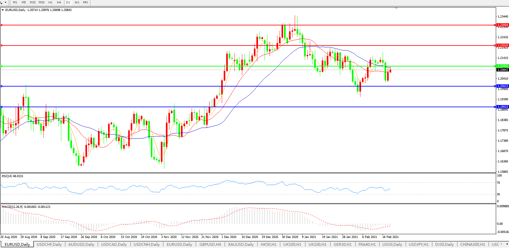 欧元兑美元EURUSD   日线图: