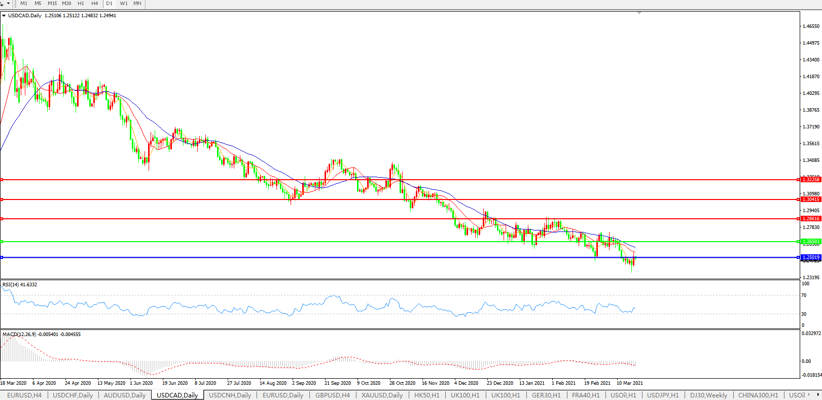 美元兑加元USDCAD 日线图: