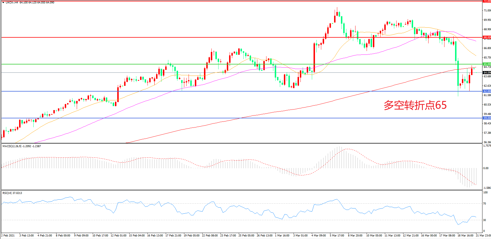 交易策略:在65.00之下看跌,目标62.00    59.00
