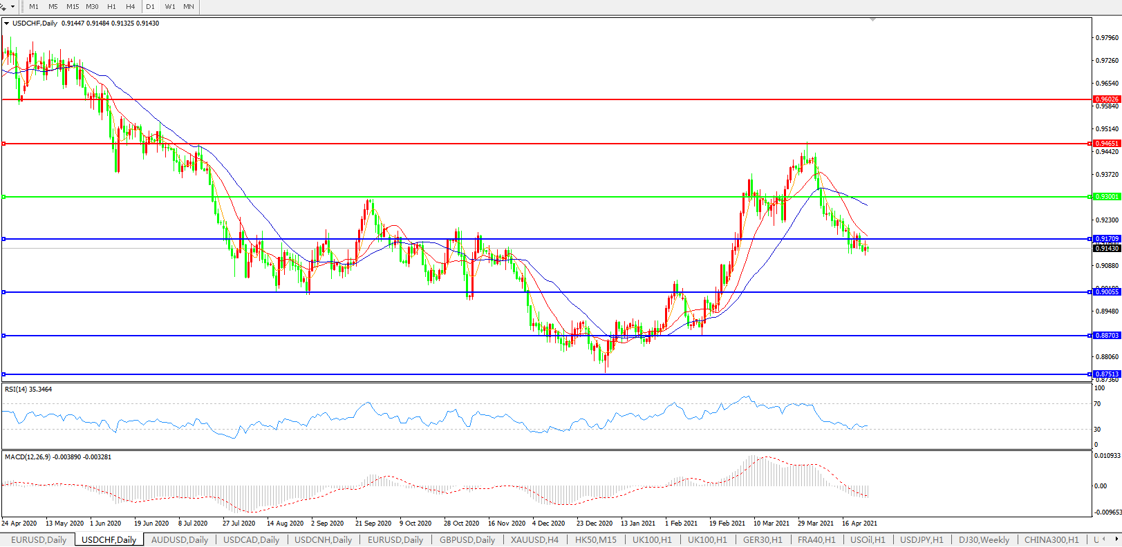 美元兑瑞郎USDCHF 日线图: