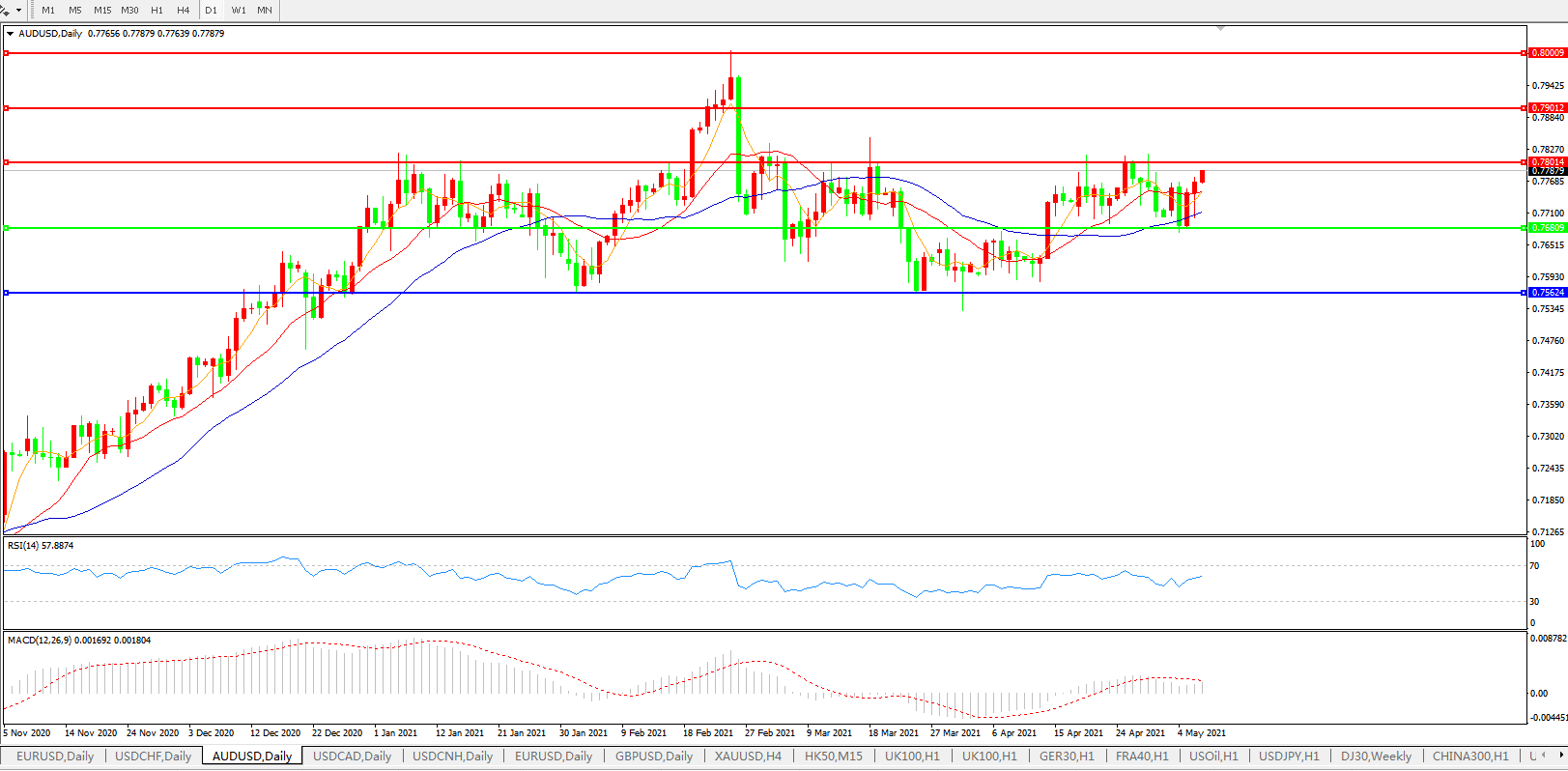 压制位:0.7800 0.7900