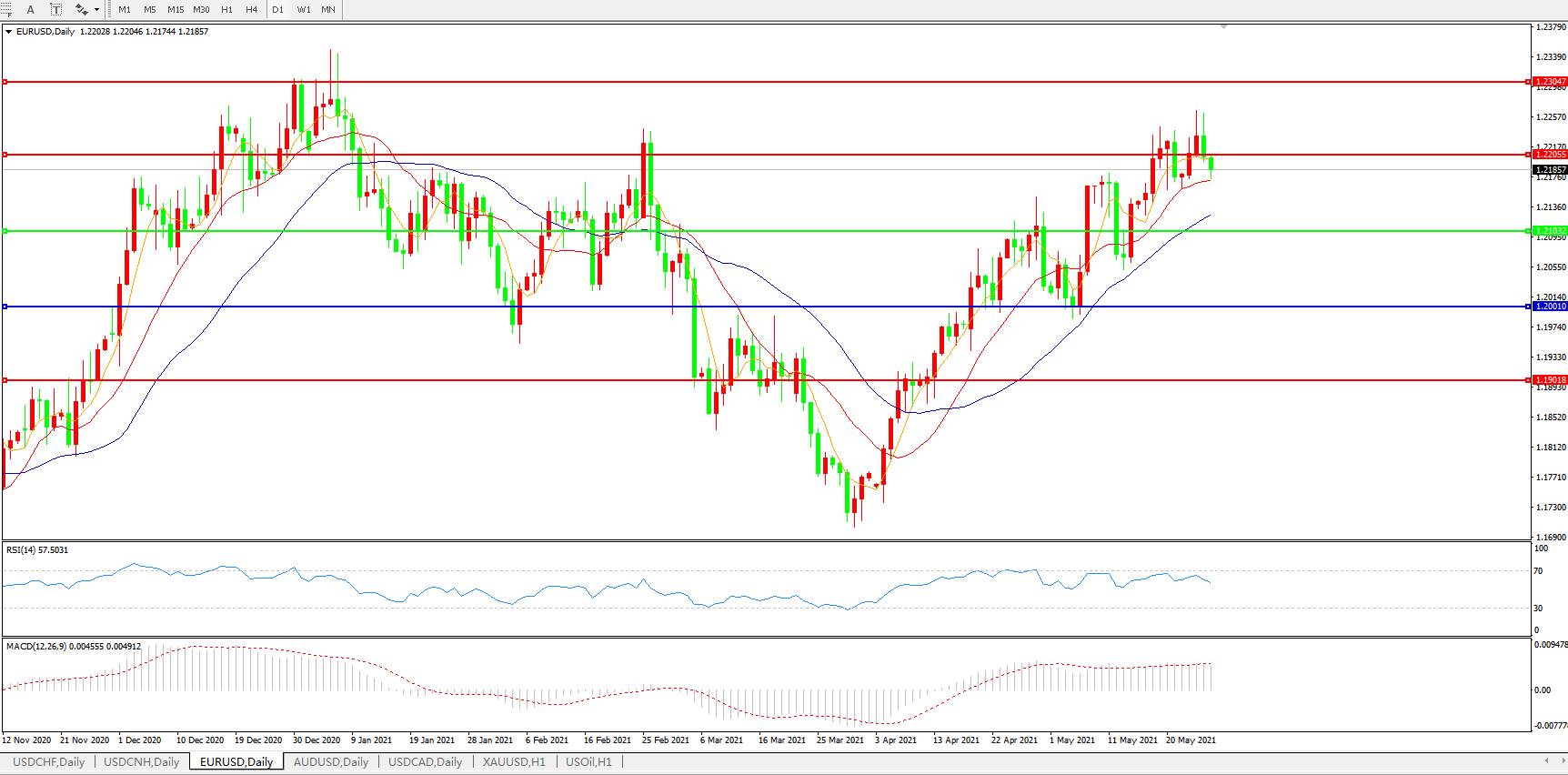 欧元兑美元EURUSD 日线图: