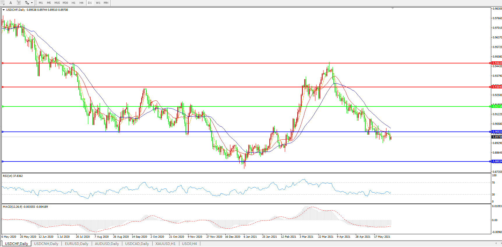 美元兑瑞郎USDCHF 日线图:
