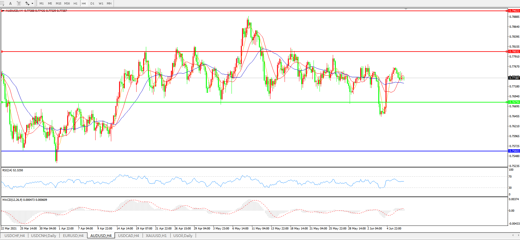 交易策略:0.7680上方看涨,目标0.7800、0.7900