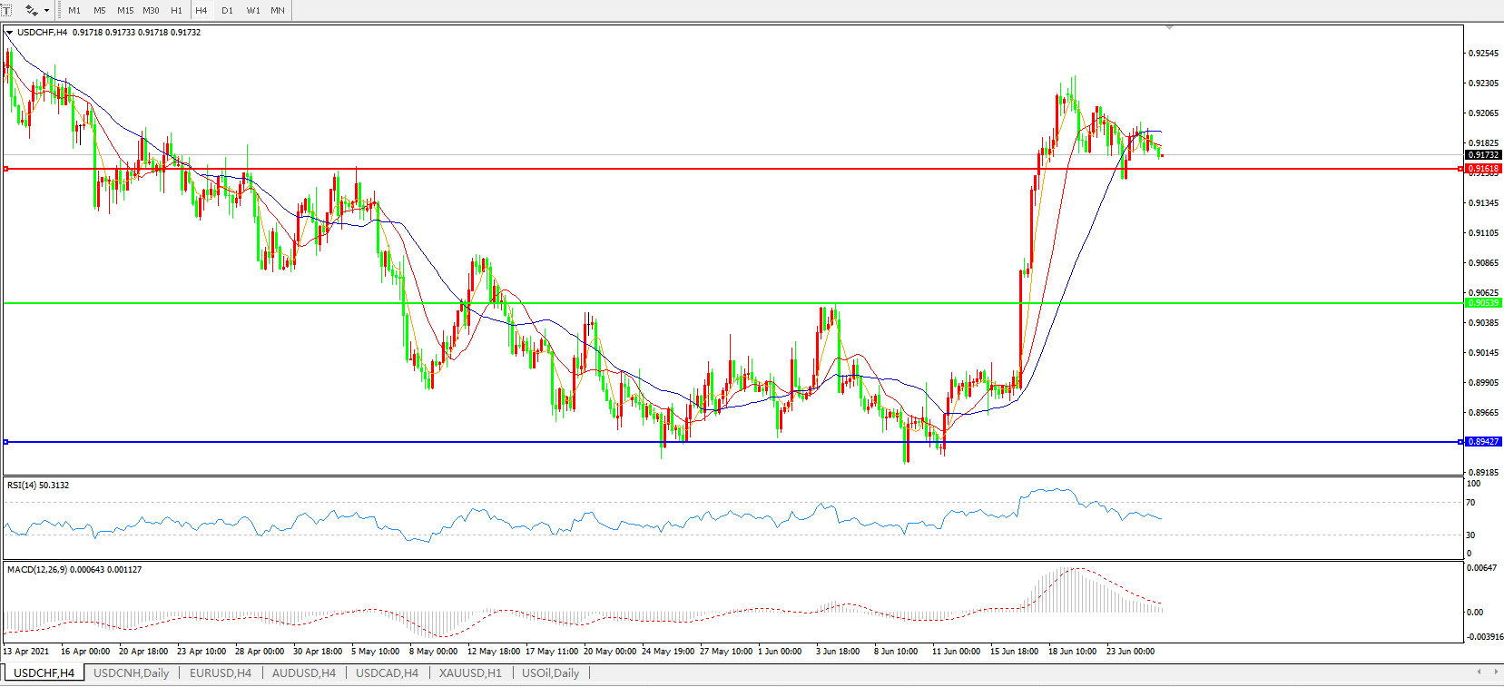 美元兑瑞郎USDCHF 4小时图: