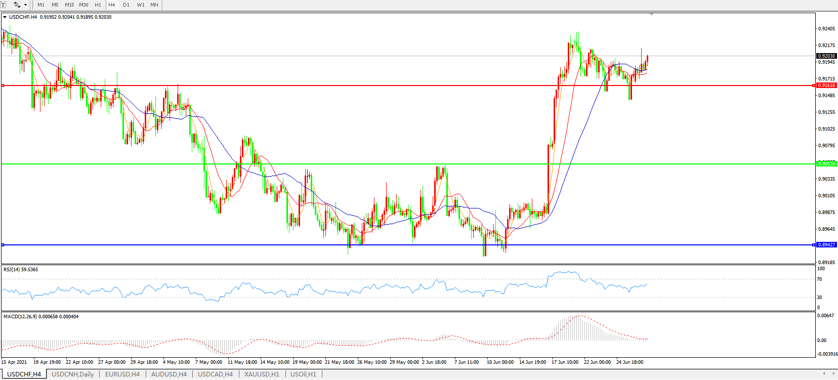 美元兑瑞郎USDCHF 4小时图:
