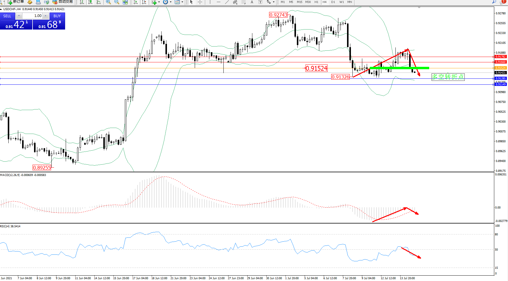 支撑位:0.91285、0.91149