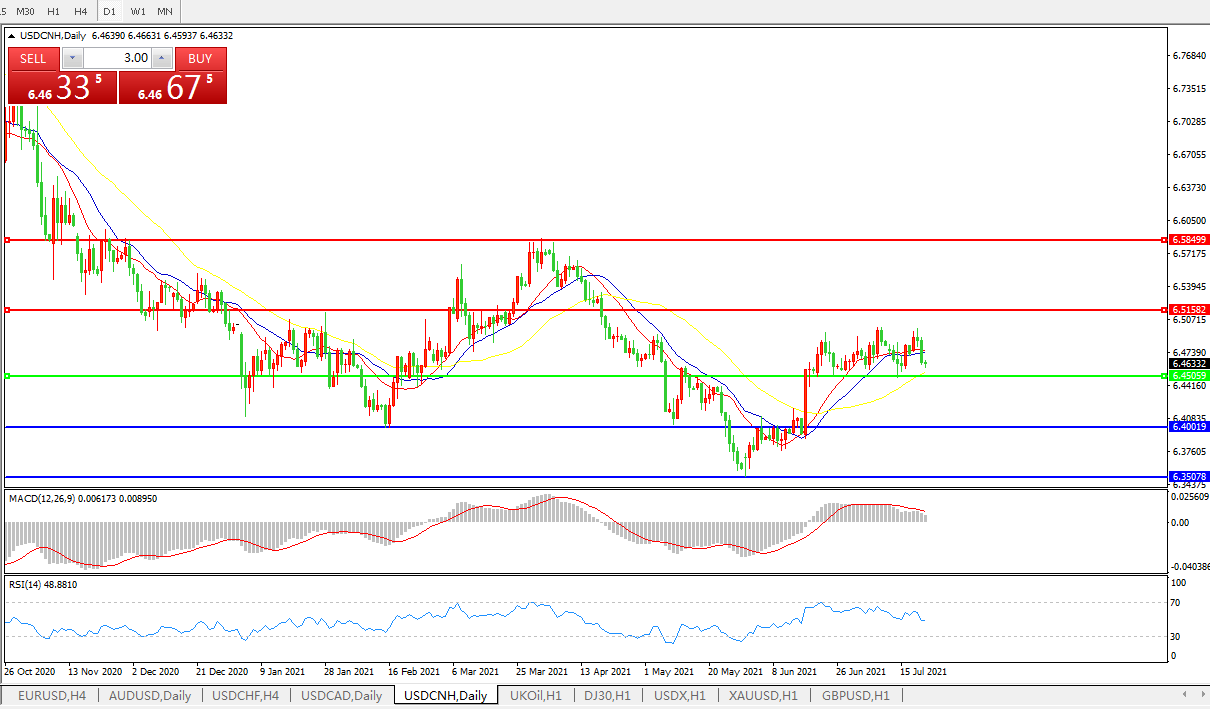 备选策略: 在6.4505之下,看跌,目标价位为6.4000,然后为6.3505。