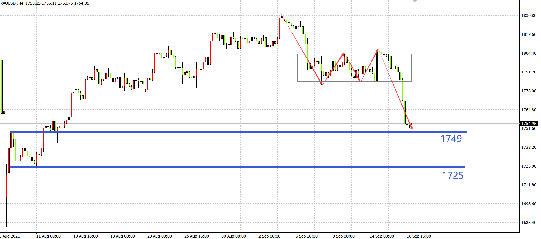现货黄金XAU/USD 4小时图