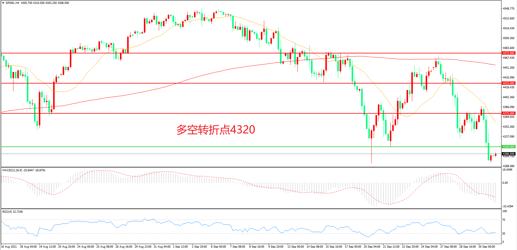 支撑位:4320.00 4250.00
