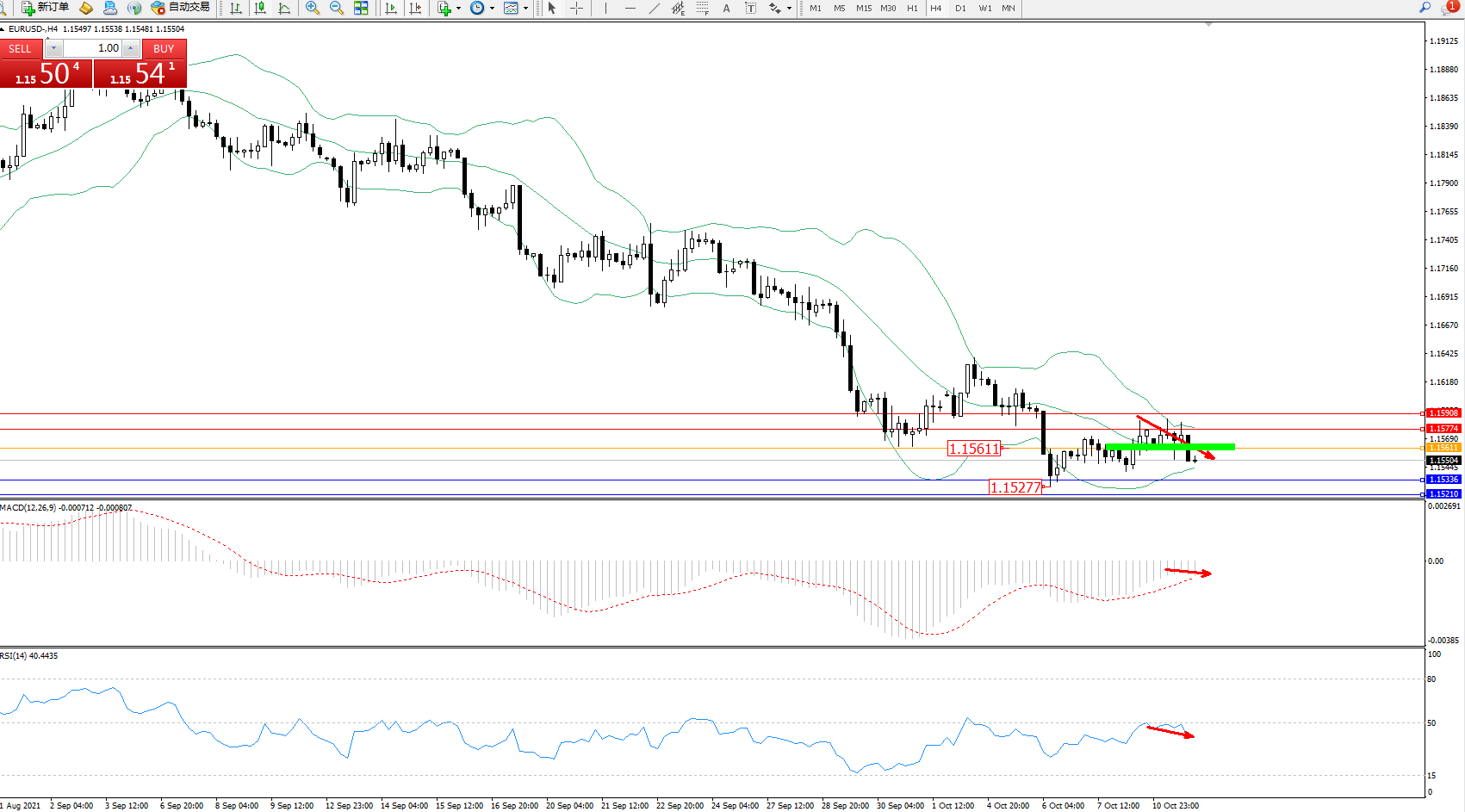 交易策略:1.15611下方看跌,目标1.15336、1.15210
