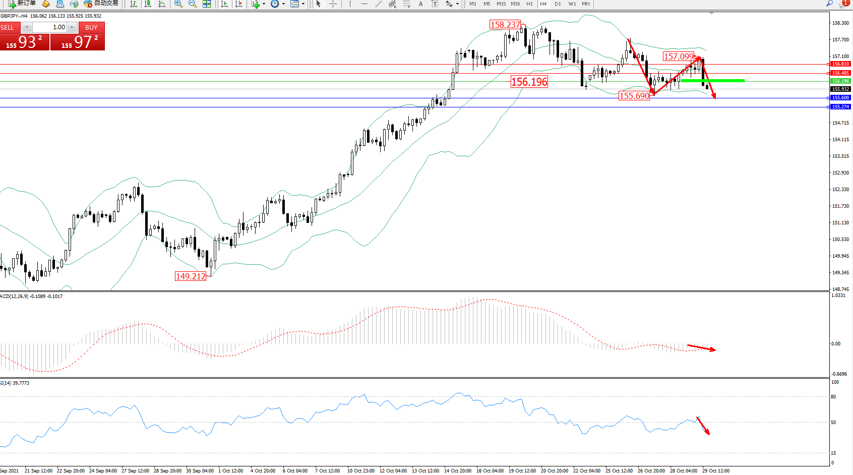 交易策略:156.196下方看跌,目标155.600、155.274