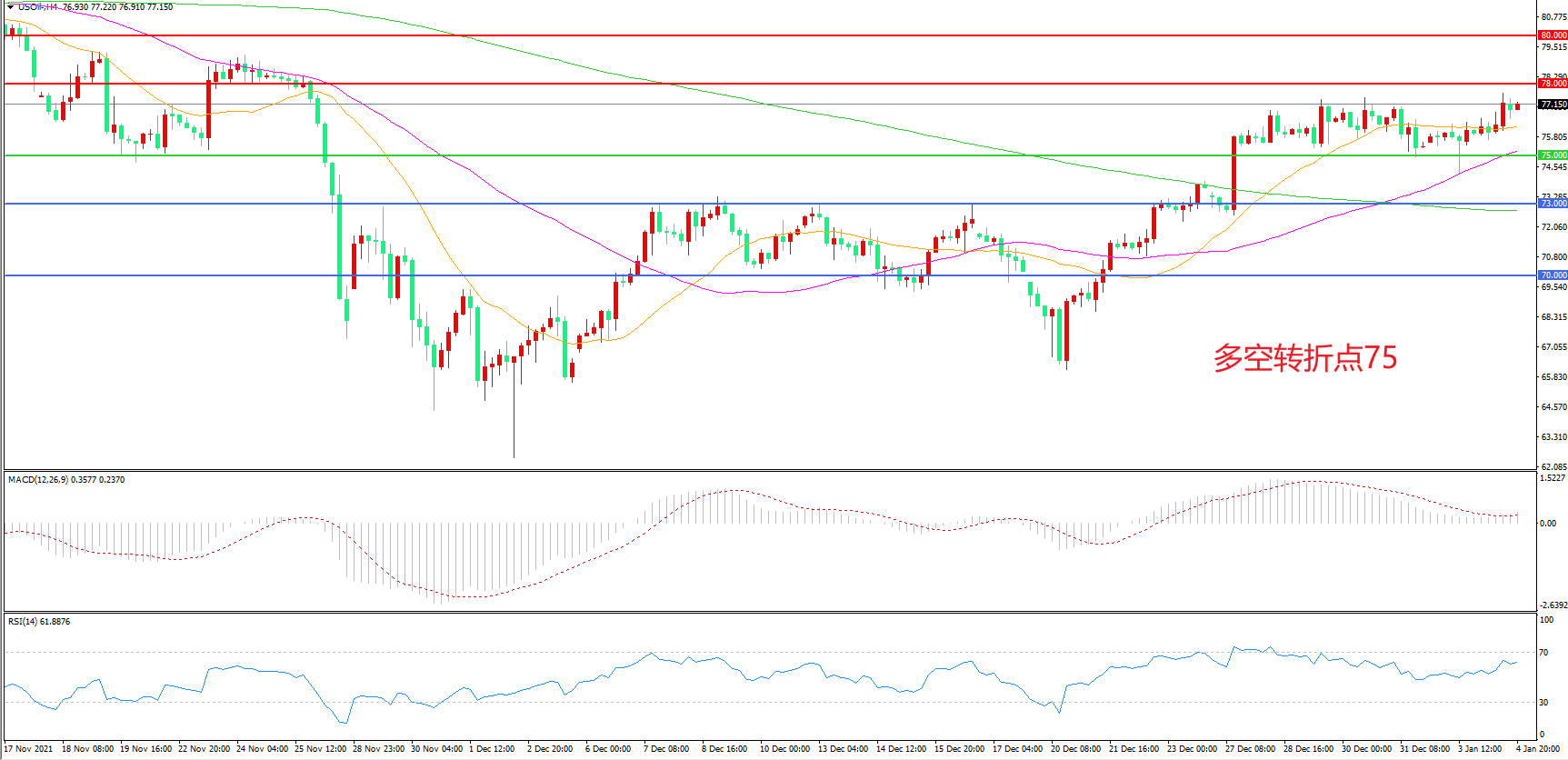 多空转折点:75.00