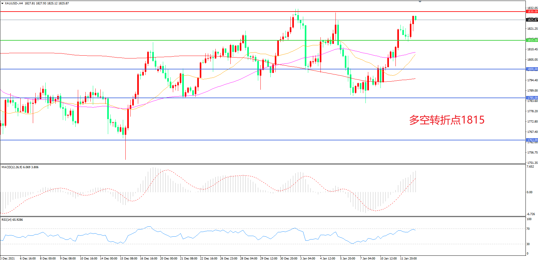 交易策略:在1815.00之上看涨,目标1830.00       1845.00