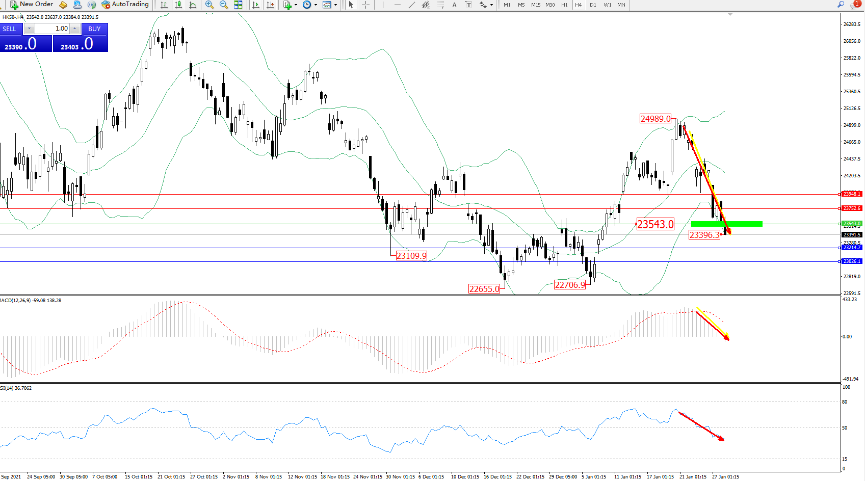 恒指HK50 ——4小时K线图显示: