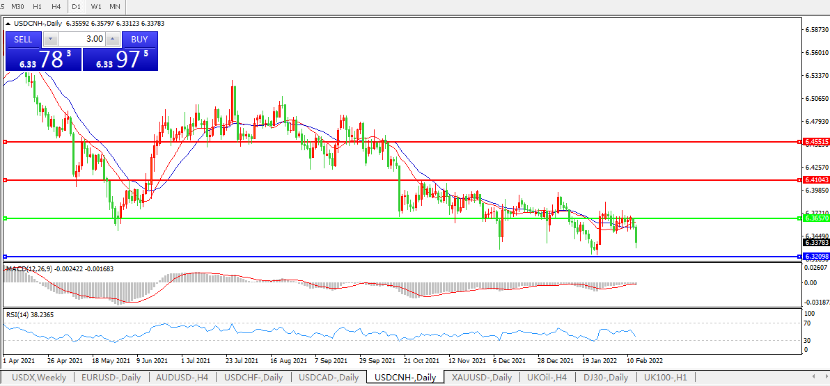 备选策略:在6.3650之上,看涨,目标价位为6.4100,然后为6.4550。
