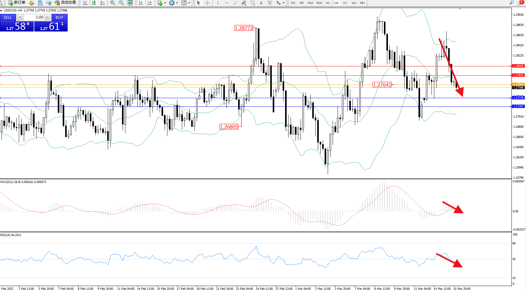 美元加元USDCAD——4小时K线图显示: