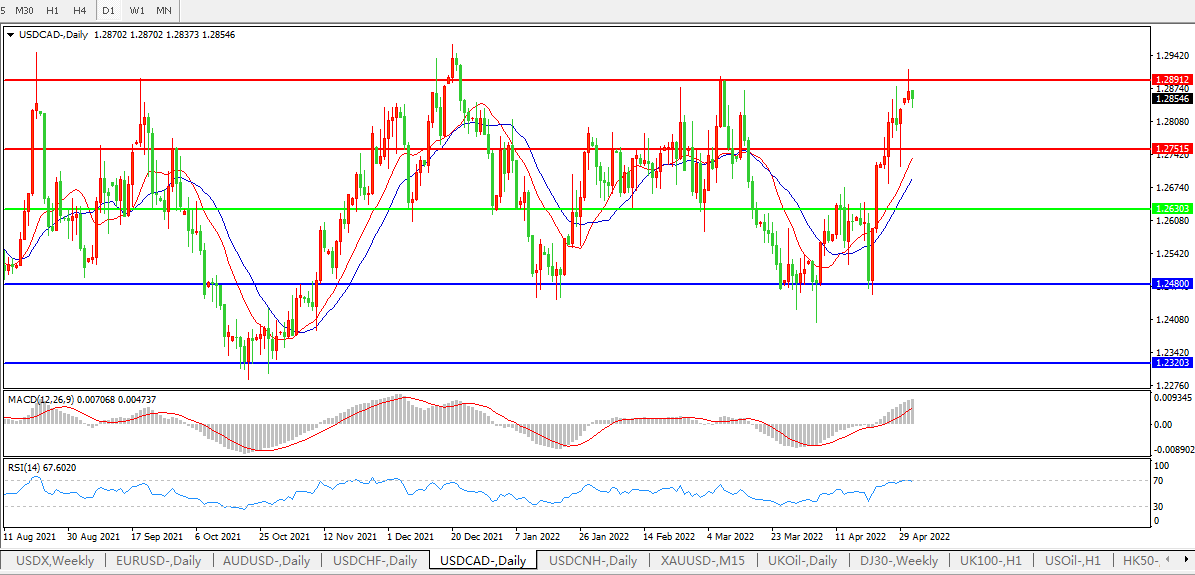 美元兑加元USDCAD 日线图: