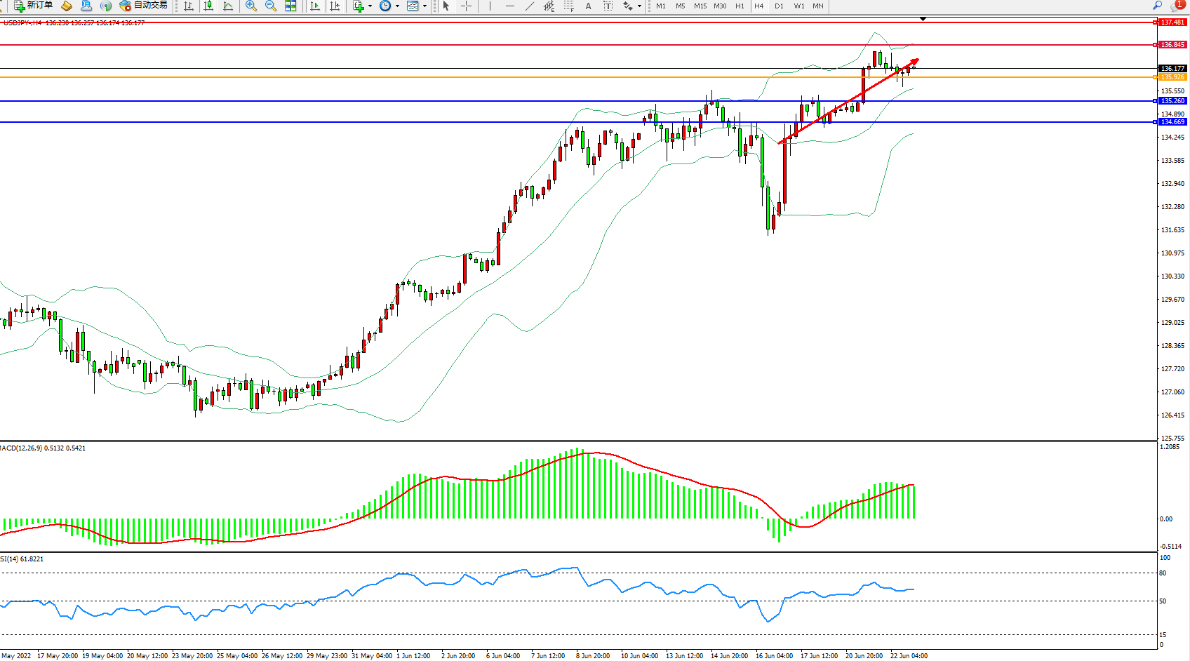 备选策略:135.926上方看涨,目标136.845、137.481