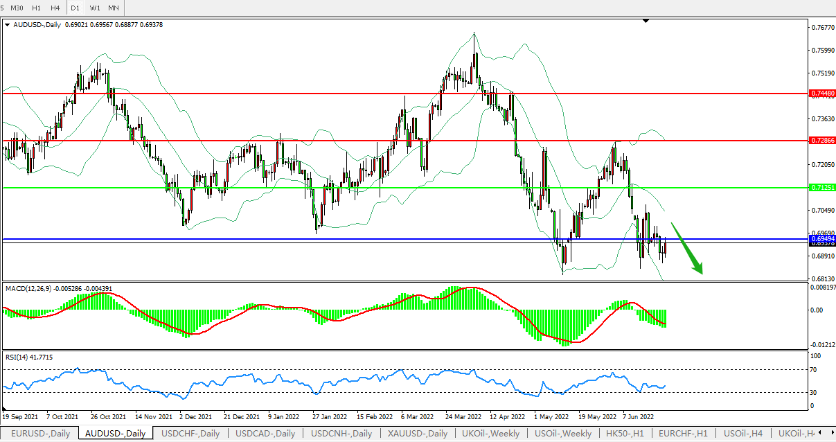 交易策略:0.7125下方看跌,目标0.6950、0.6800