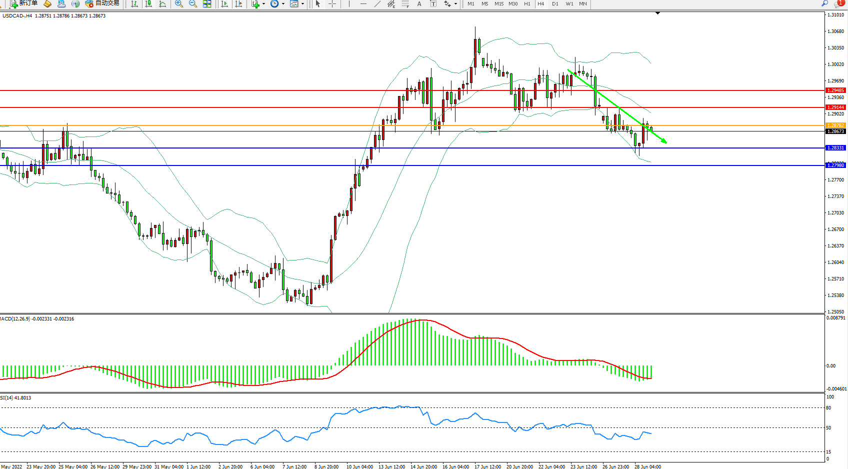 美元加元USDCAD——4小时K线图显示: