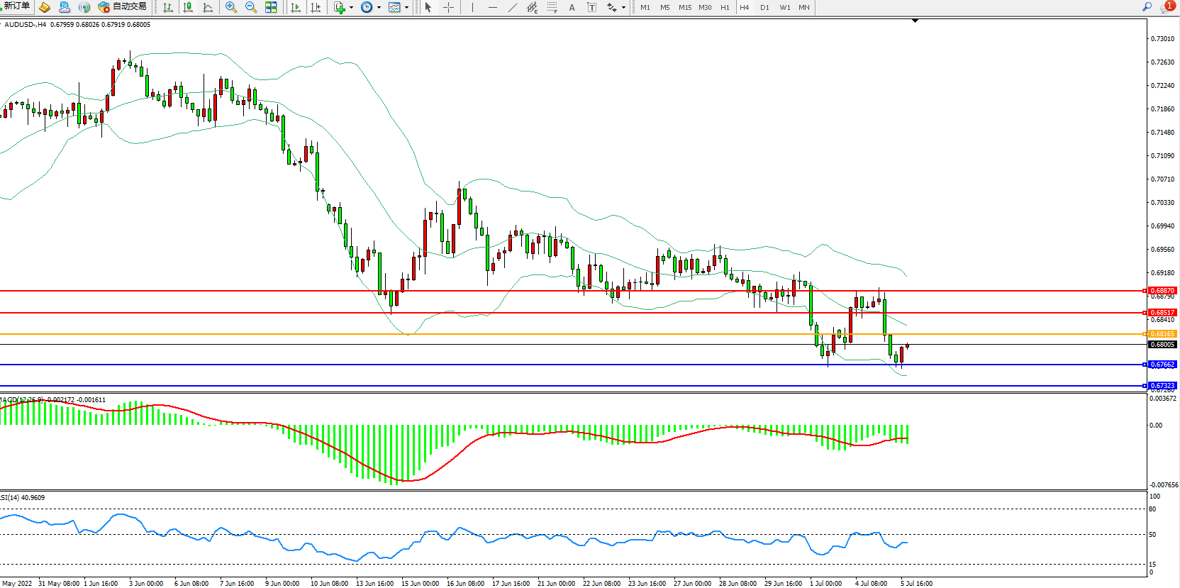 澳元美元AUDUSD——4小时K线图显示: