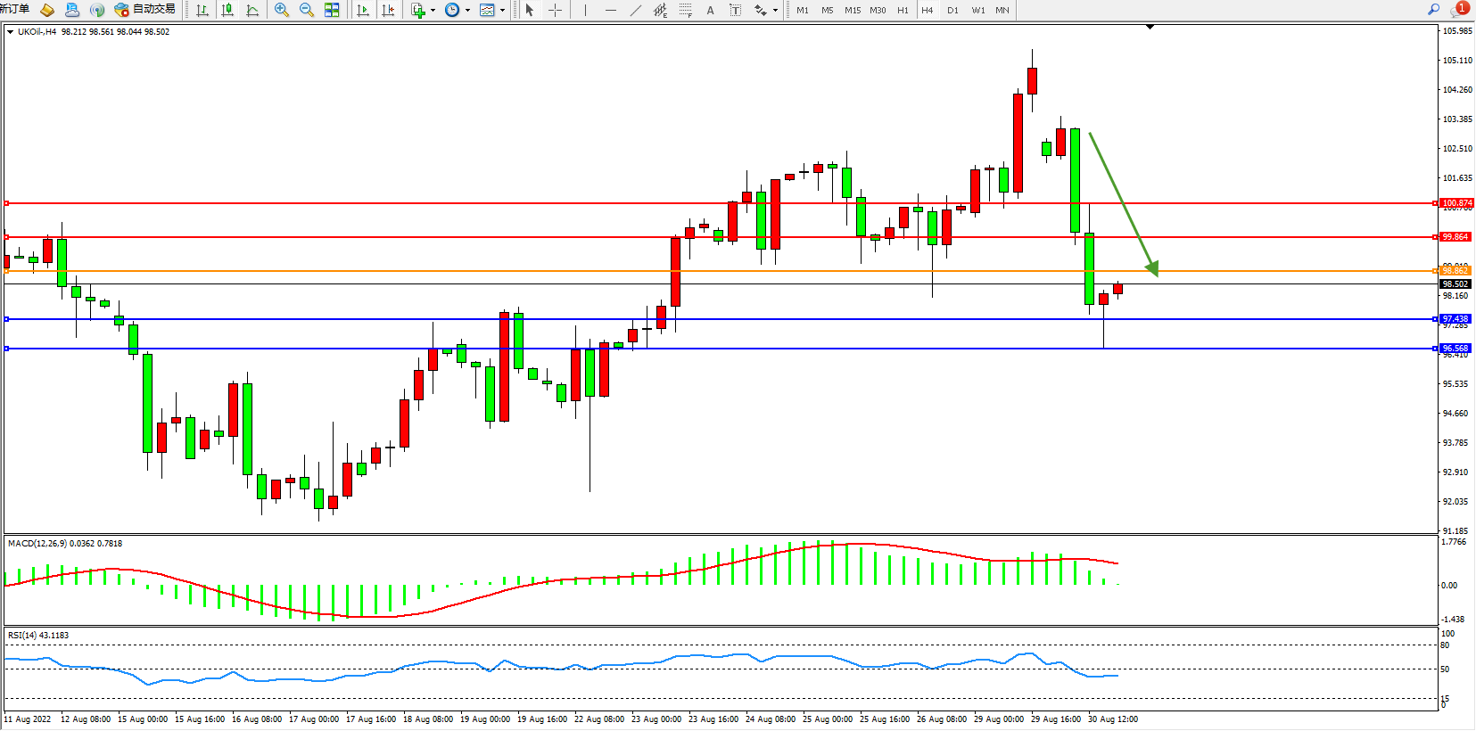 布油维持98.502附近震荡,伊朗原油可能会重返国际市场,这将给油价带来下行压力,而沙特正试图避免这种情况的发生。这一消息令布伦特原油价格突破每桶100美元大关,此前由于对全球经济衰退的担忧加剧,这一国际基准跌破了这一关口。