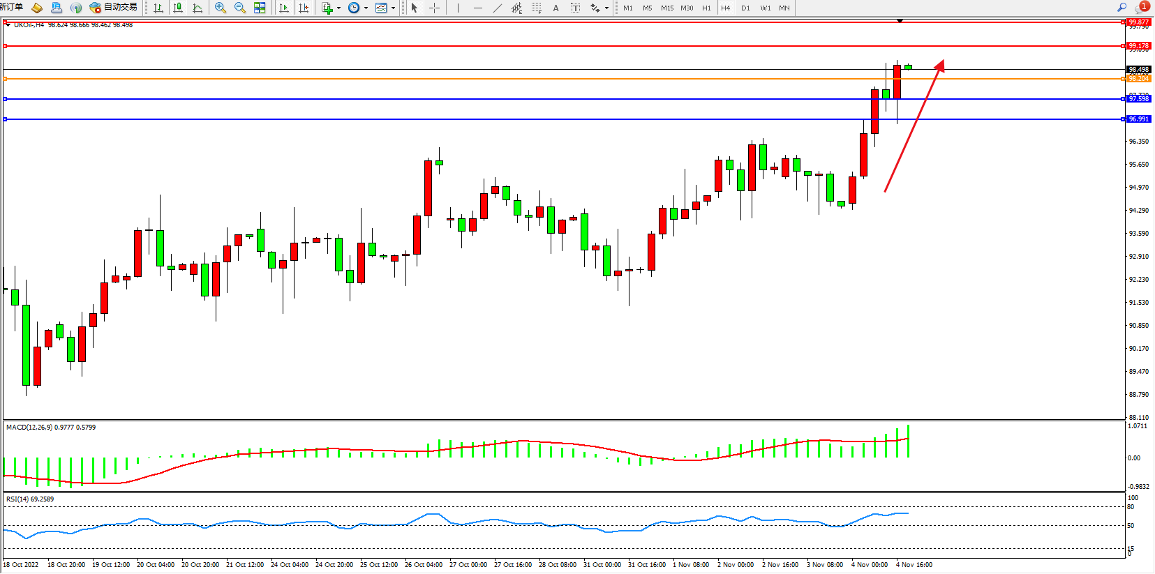 布油UKOil——4小时K线图显示: