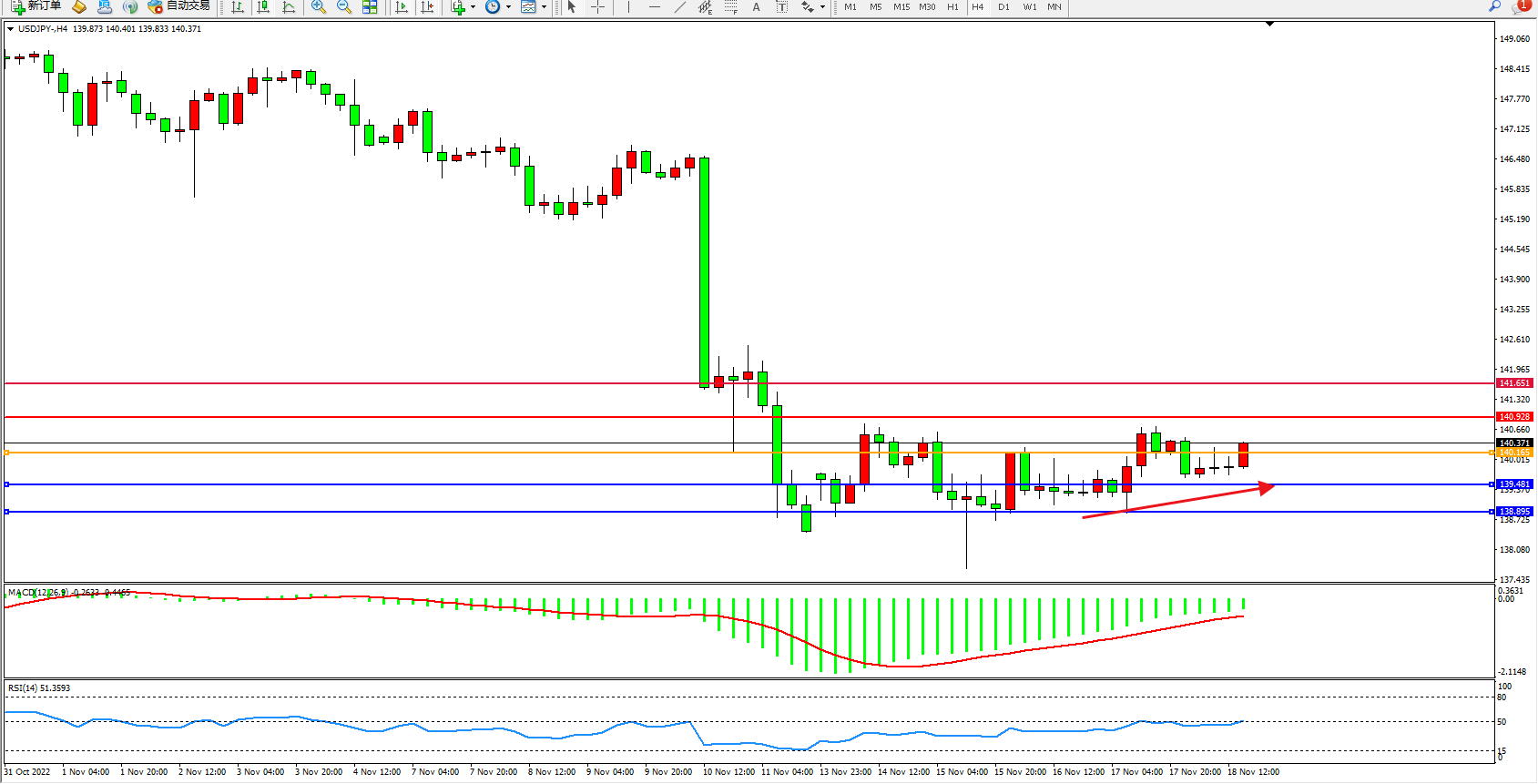 交易策略:140.165上方看涨,目标140.928、141.651