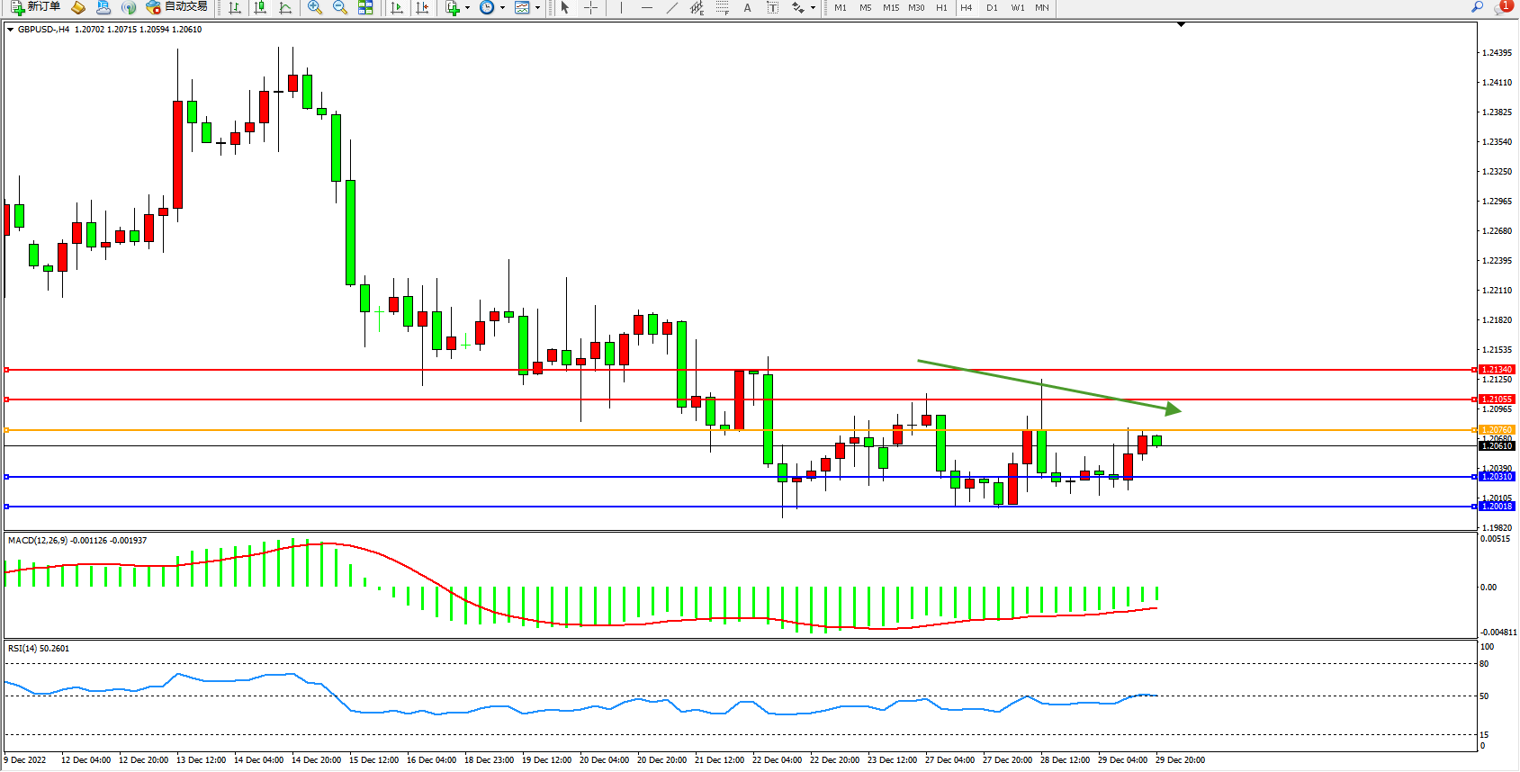 英镑美元GBPUSD ——4小时K线图显示: