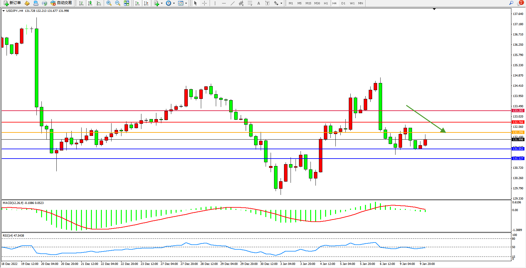 交易策略:132.295下方看跌,目标131.552、131.127