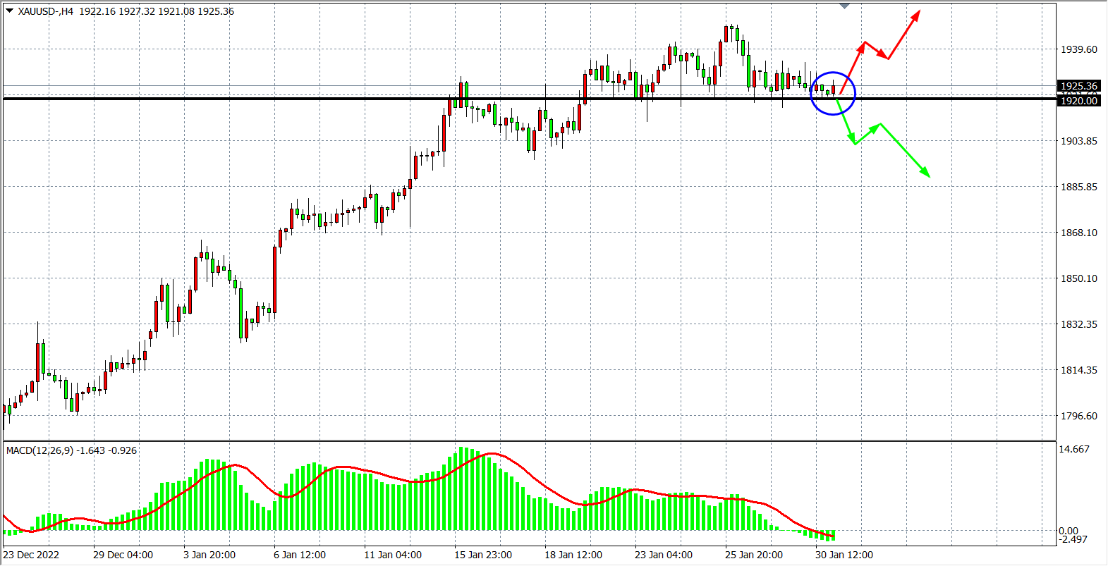 备选策略:在1920.00 之下看跌,目标1900.00         1880.00