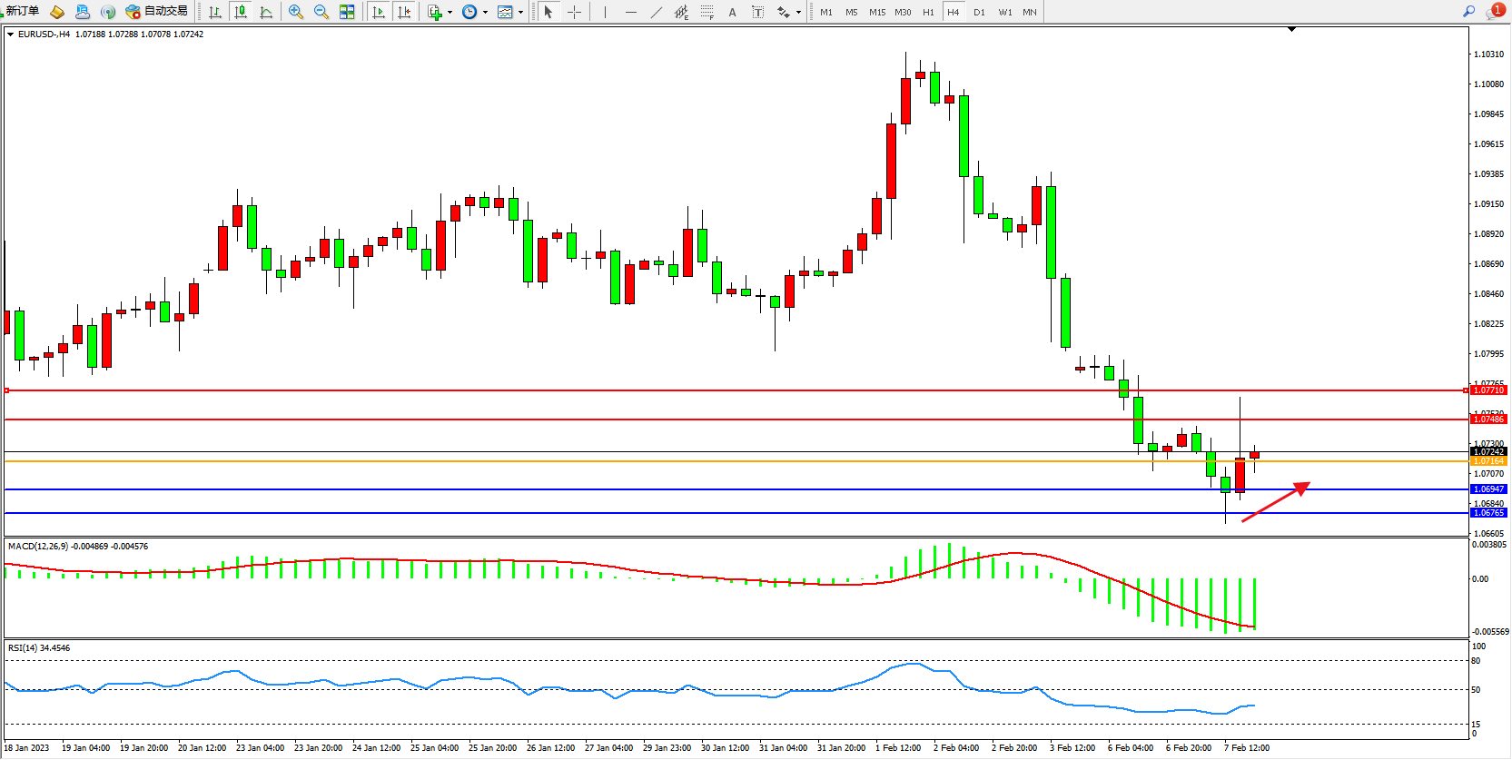 备选策略:1.07164下方看跌,目标1.07486、1.07710