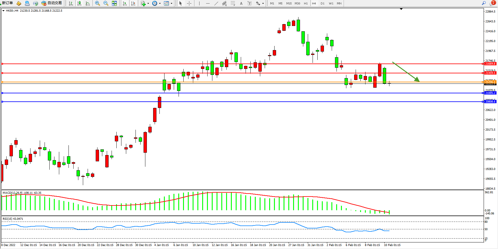 恒指HK50 4小时图