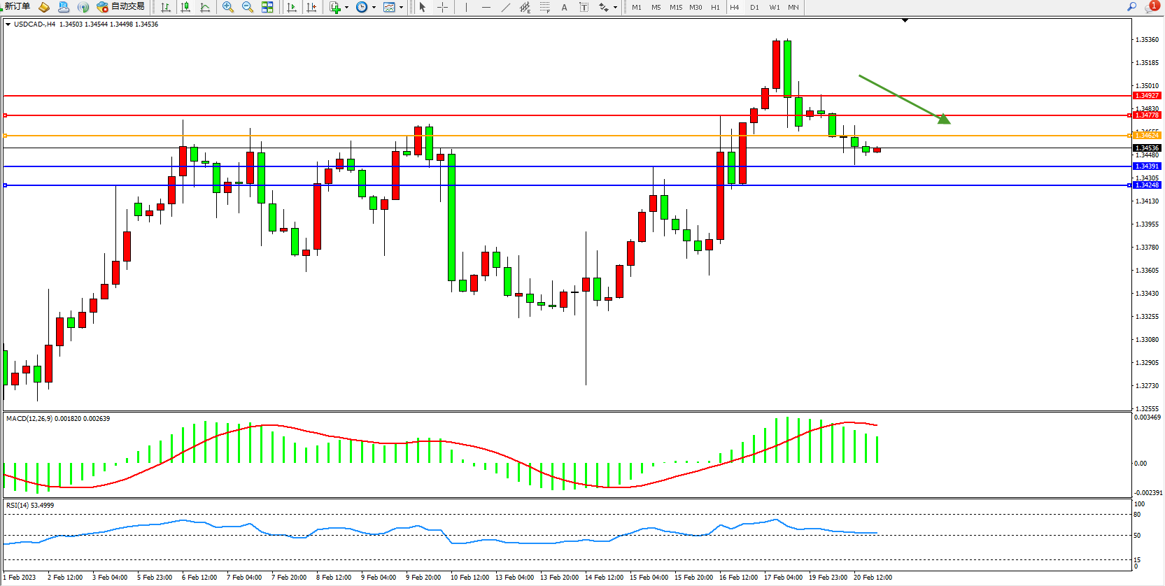 美元加元USDCAD——4小时K线图显示: