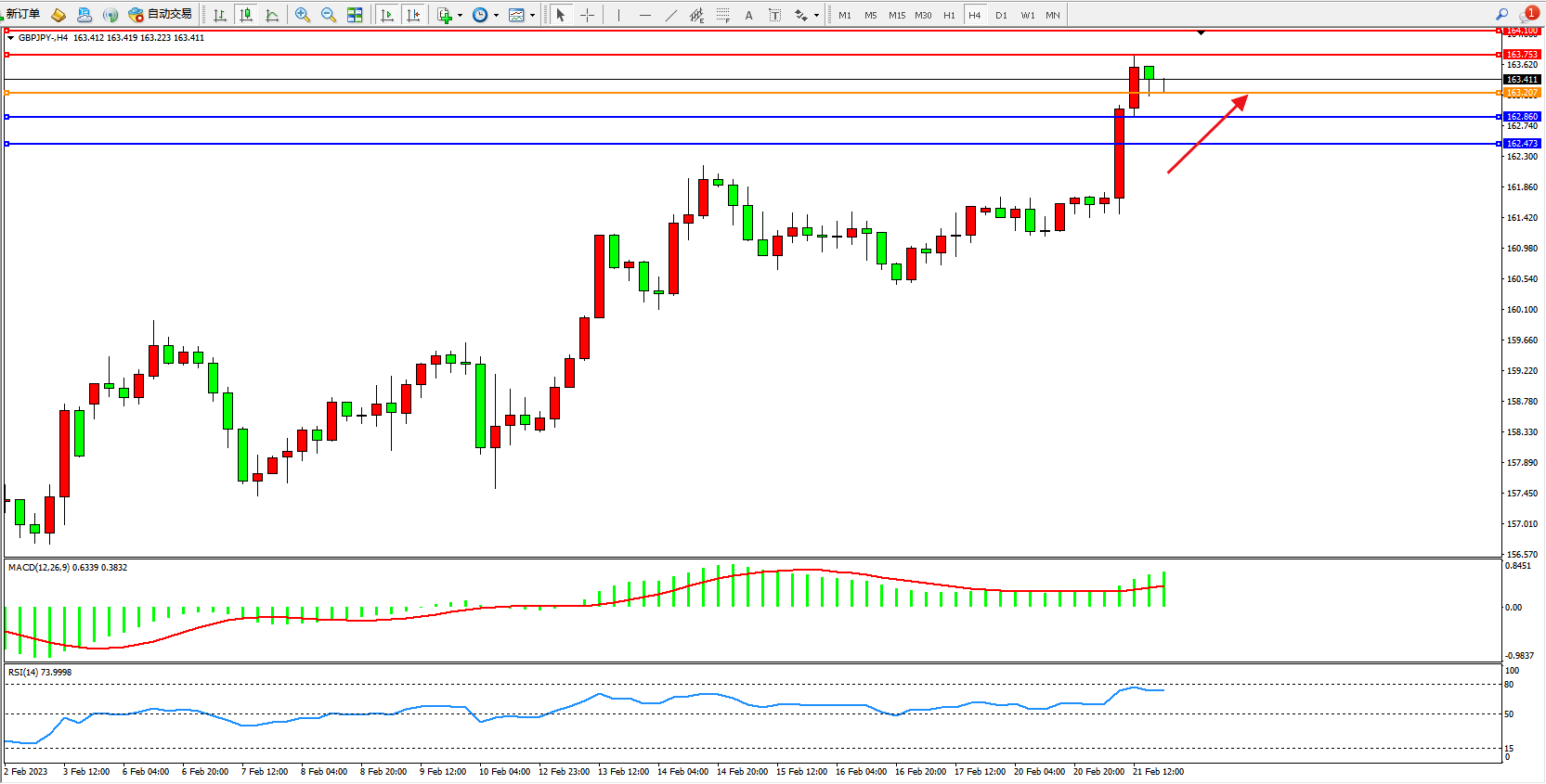 交易策略:161.207上方看涨,目标163.753、164.100