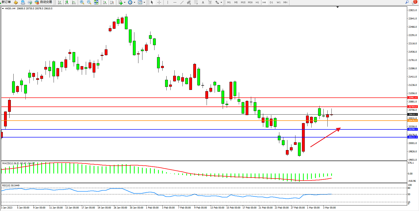恒指HK50 4小时图