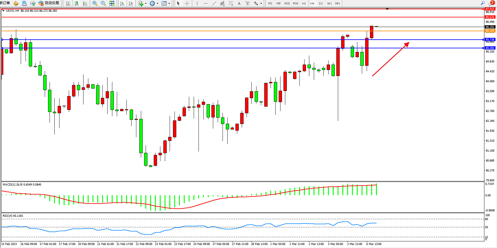 布油UKOil——4小时K线图显示: