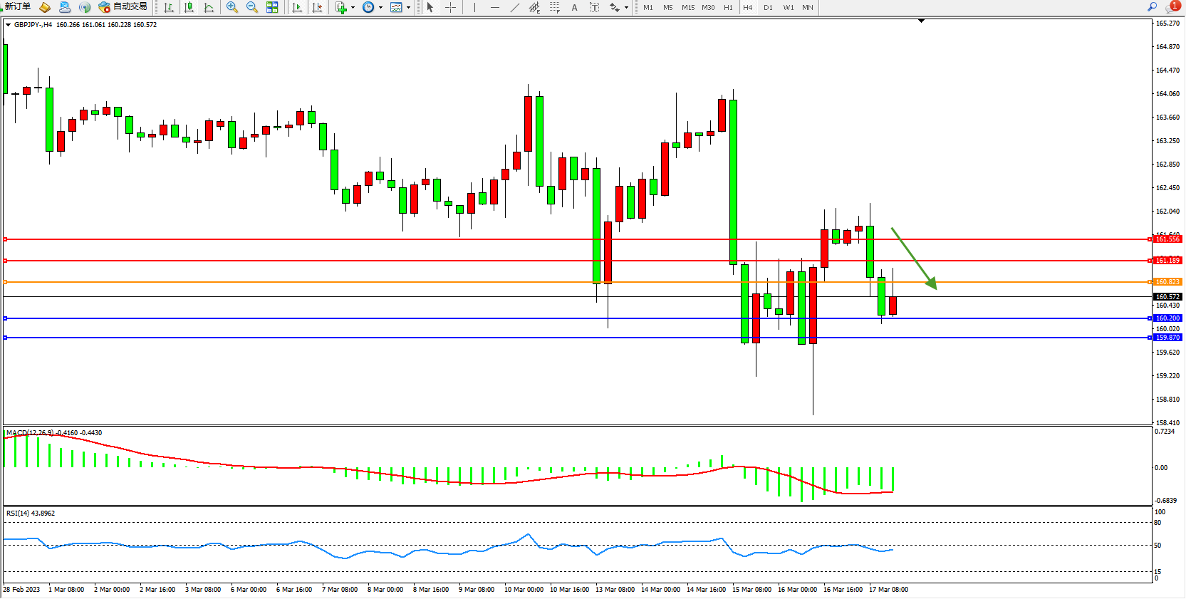 交易策略:160.823下方看跌,目标160.200 159.870