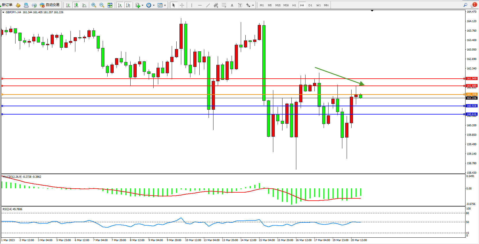 交易策略:161.358下方看跌,目标160.928 160.616