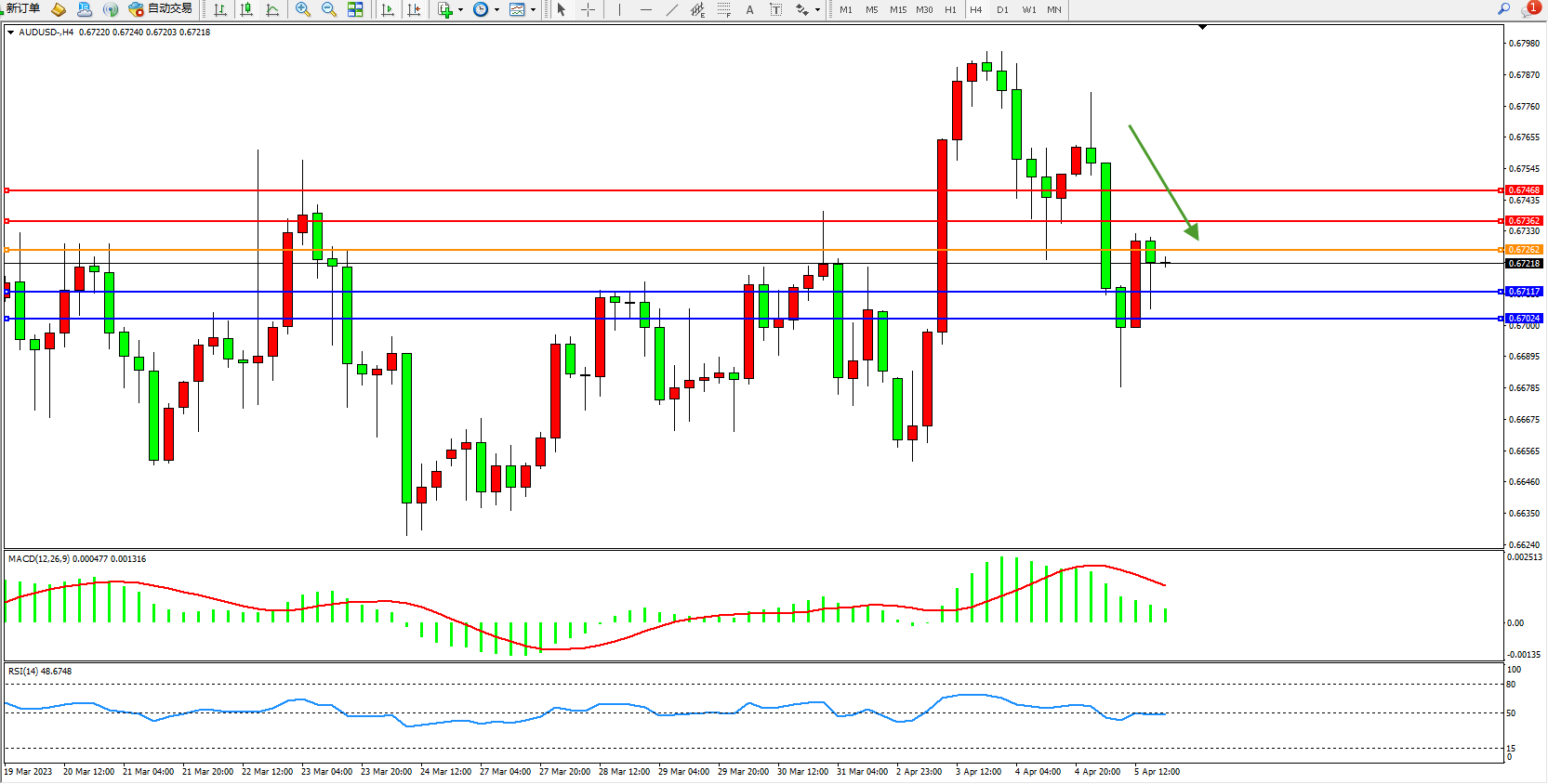 备选策略:0.67262上方看涨,目标0.67362  0.67468