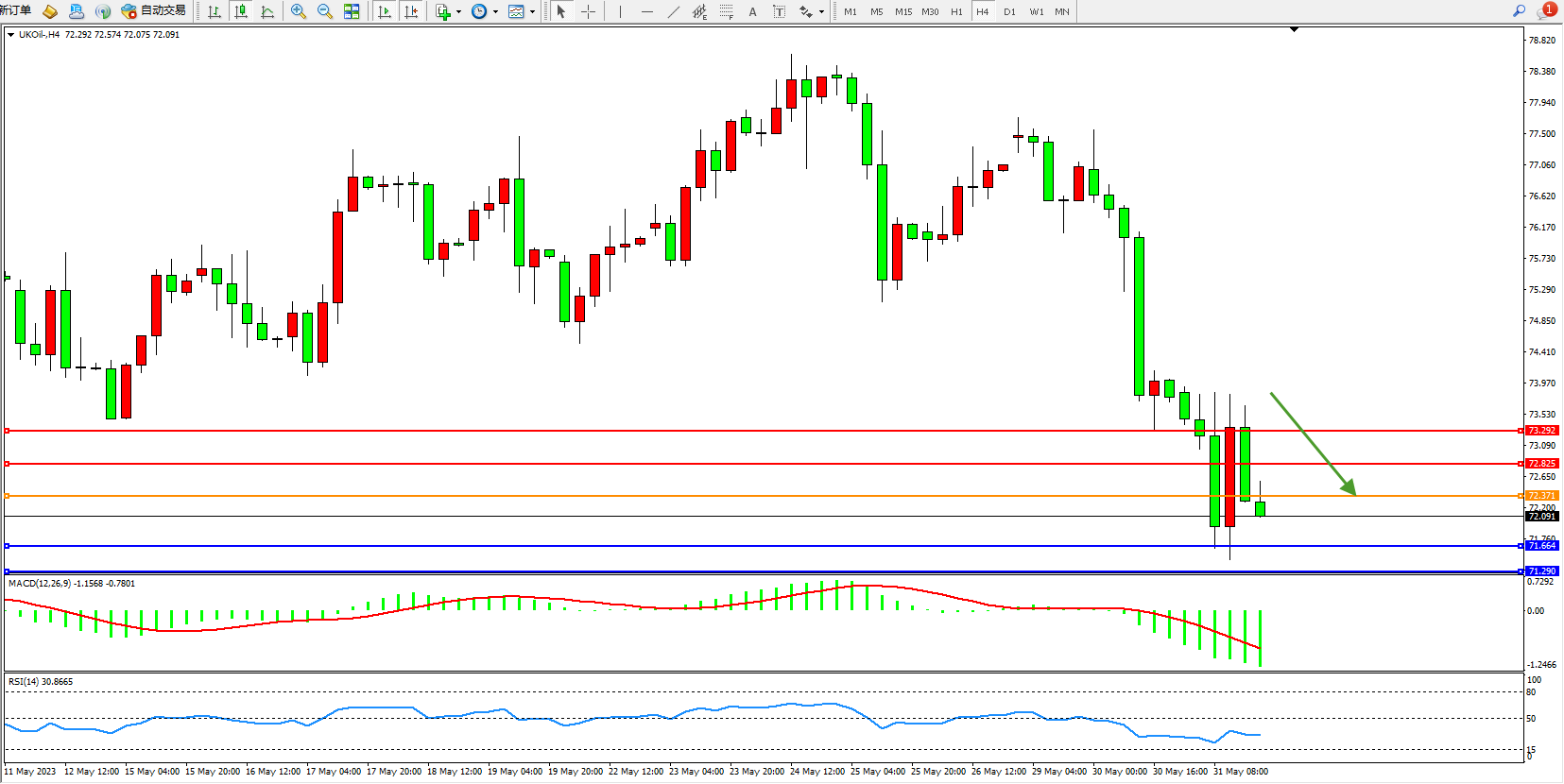 布油UKOil——4小时K线图显示: