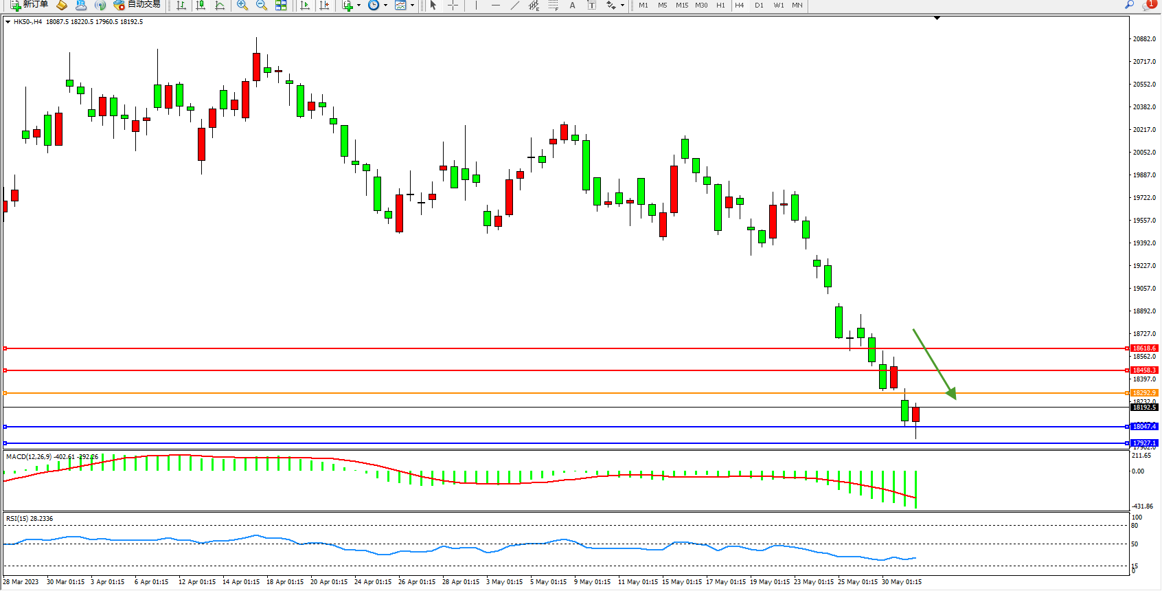 恒指HK50 4小时图